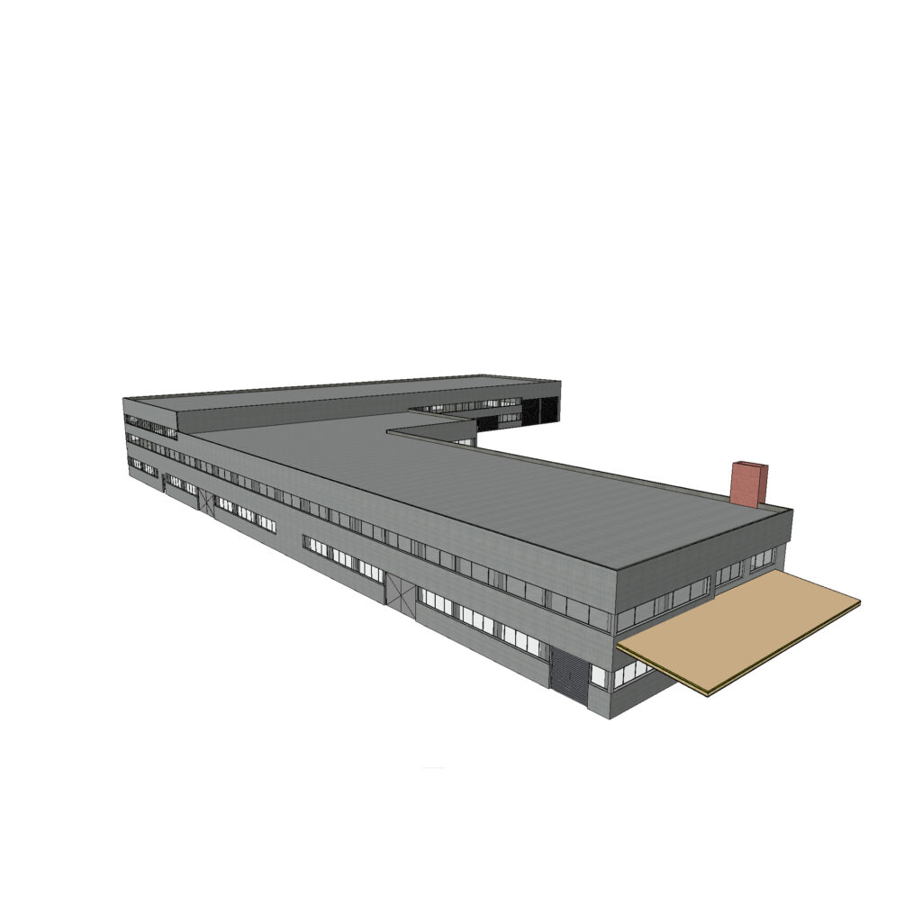Wir wurden beauftragt, die Außenfassade einer Halle mit ca. 6.500 m² Fläche vollständig zu erfassen. In dieser alten Industriebau-Halle soll die bestehende Waschbetonplattenverkleidung durch eine moderne Aluminiumfassade ersetzt werden.